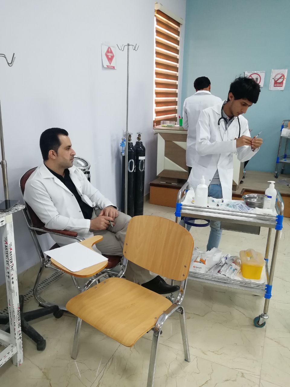 أجرت كلية التمريض جامعة وارث الأنبياء الإمتحان العملي النهائي لمادة أساسيات التمريض العملي الكورس الثاني لطلاب المرحلة الأولى بين الفترة من 18-5-209 إلى 20-5- 2019 بإشراف مجموعة من الأساتذة الأفاضل مدرسي المادة حيث أجري الإمتحان على مانيكانات ودمى حديثة في مختبرات الكلية وبين الأستاذ شادي دواره مشرف تدريب الطلاب في مستشفى الإمام زين العابدين ع أن هذا الإمتحان جاء تتويجا للتدريب العملي الذي تلقاه الطلاب في المختبرات على أحدث المانيكانات والأجهزة والذي رفده أيضا تدريب الطلاب بشكل عملي على كافة المهارات الأساسية والتي درست في الكورسين الأول والثاني في مستشفى الإمام زين العابدين ع وهذا بهدف تزويد الطلاب بالمهارة والخبرة العملية الازمة للممارسة المهنة بشكل آمن وبمستوى عالي خدمة لمجتمعنا العراقي الحبيب.