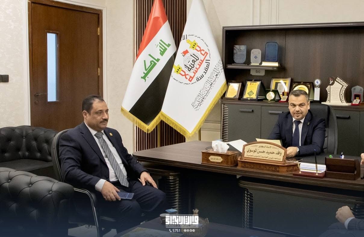 استقبل رئيس جامعة وارث الأنبياء (عليه السلام)، الأستاذ الدكتور إبراهيم سعيد الحياوي، وعميد كلية الطب، الأستاذ الدكتور علي عبد سعدون، في زيارة رسمية، الدكتور خالد الأعرجي، عميد كلية الطب في جامعة كربلاء. جاءت هذه الزيارة في إطار تعزيز التعاون الأكاديمي بين الجامعات العراقية وتبادل الخبرات العلمية، بهدف تطوير قطاع التعليم الطبي في العراق ورفع مستواه بما يواكب أحدث المعايير العالمية.