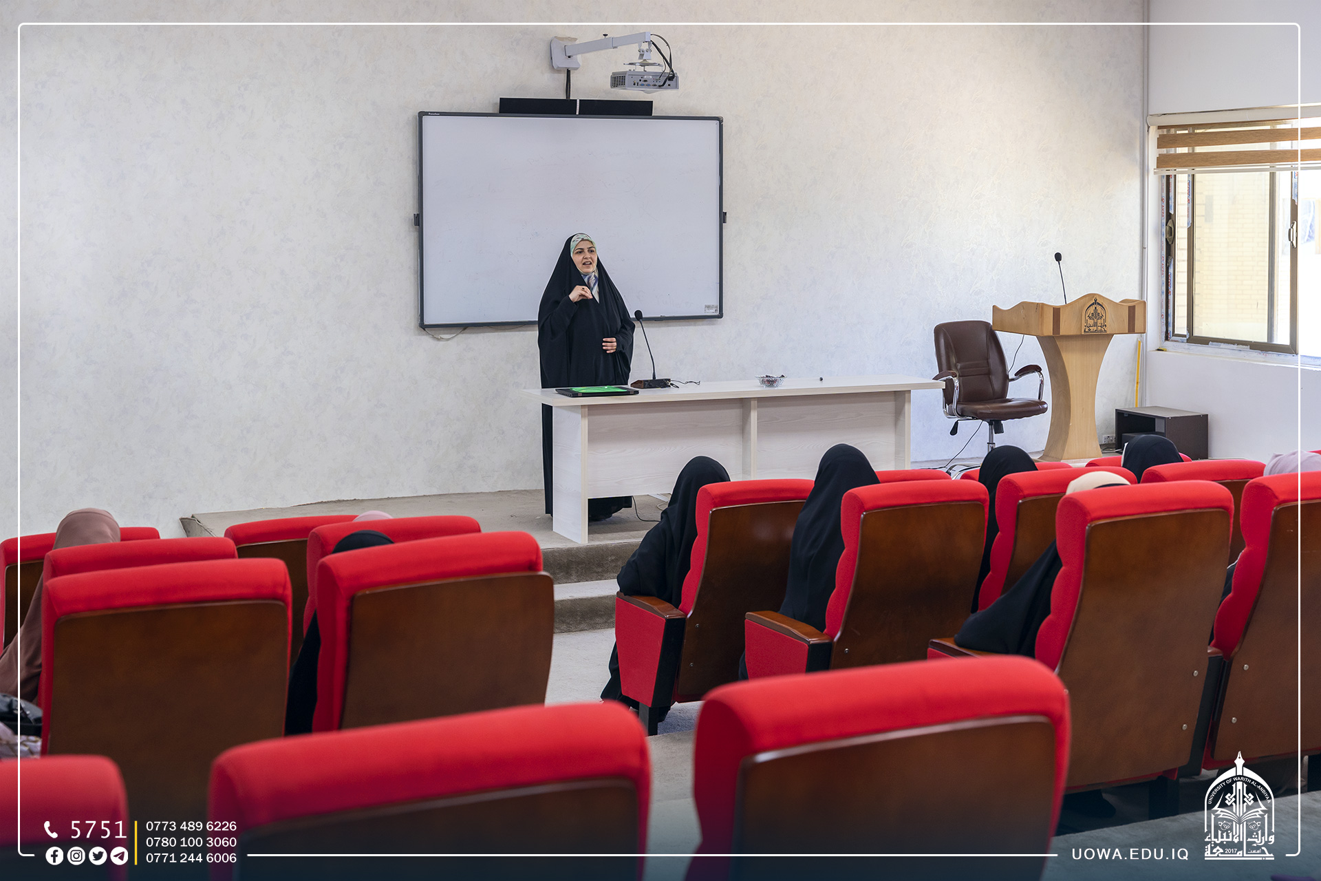 نظمت إدارة الاقسام الداخلية محاضرة تثقيفية للطالبات المقيمات في أقسام جامعة وارث الأنبياء (عليه السلام) تحت عنوان(الشخصية المثالية لشهر رمضان) قدمتها الاستاذة هيام محمد أمين من العتبة الحسينية المقدسة