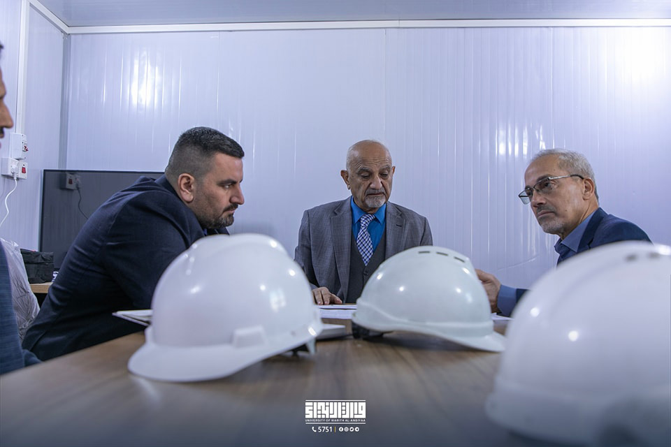 Prof. Dr. Noufal Al-Araji, Vice President for Administrative Affairs, accompanied by Dr. Munaf Fouad, Head of the University’s Construction and Projects Department, conducted an inspection visit to review the progress of the dormitory project.