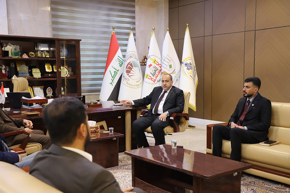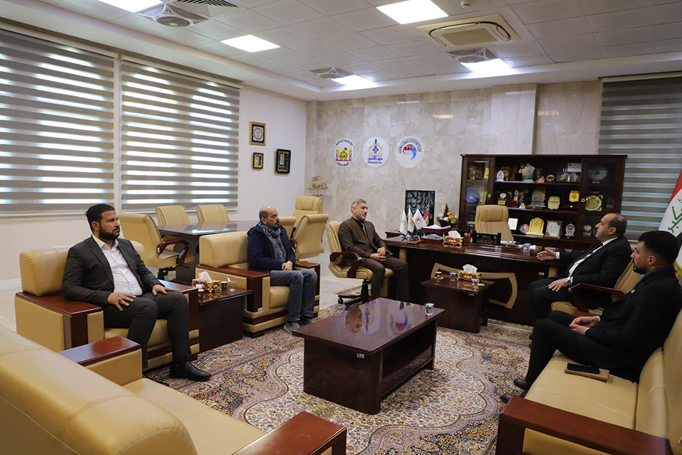 The President of the University of Warith Al-Anbiyaa (PBUH), Prof. Dr. Ibrahim Al-Hayawi, welcomed a delegation from the Iraqi Journalists Syndicate—Karbala Branch, led by Mr. Hussein Al-Shammari.