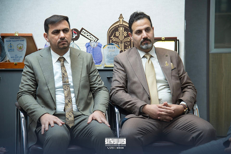 As part of its ongoing efforts to enhance academic and scientific collaboration between educational institutions, the Dean of the College of Administration and Economics at the University of Warith Al-Anbiyaa (PBUH), Professor Awad Al-Khalidi, welcomed the Dean of the College of Administration and Economics at Wasit University, Professor Ahmed Al-Waeli, during an official visit aimed at exploring opportunities for joint cooperation.
