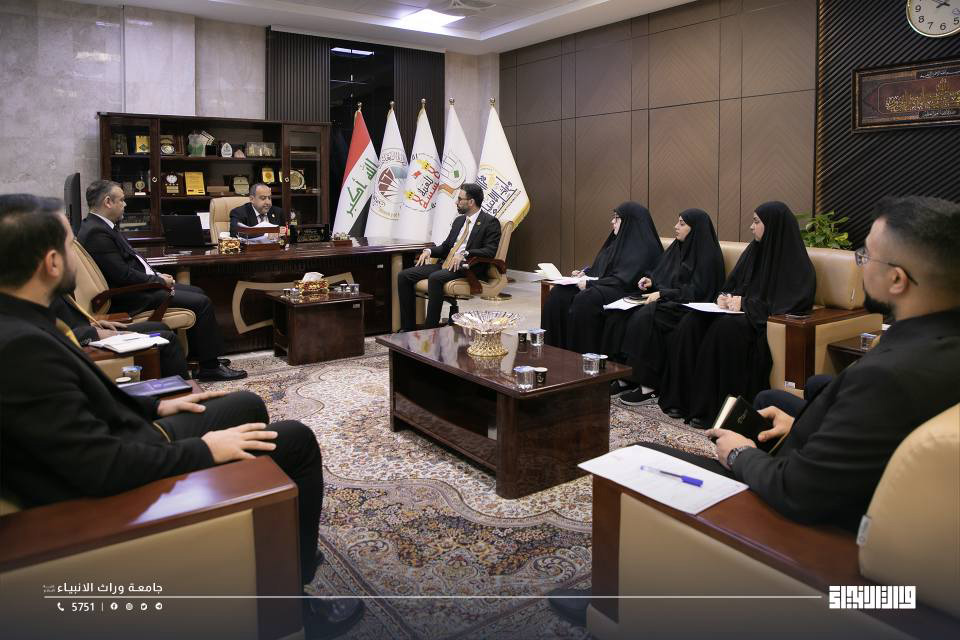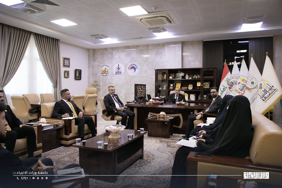 The President of the University of Warith al-Anbiyaa , Professor Dr Ibrahim Saeed Al-Hayyawi, held a meeting with the Quality Assurance Department, attended by the Scientific Assistant, Professor Dr Waqed Al-Moussawi. During the meeting, he expressed his appreciation for the Department’s efforts in enhancing the University’s institutional performance and meeting the requirements for academic accreditation and international rankings, praising its pivotal role in strengthening the quality of education and its outcomes.