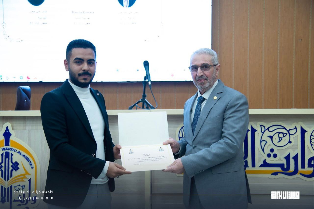The ceremony began with the recitation of selected verses from the Holy Qur’an, followed by the Iraqi national anthem and Surat Al-Fatiha in remembrance of the martyrs of Iraq. A documentary film introducing Warith Al-Anbiyaa University and the College of Islamic Sciences was then screened, highlighting their academic and scholarly journey.