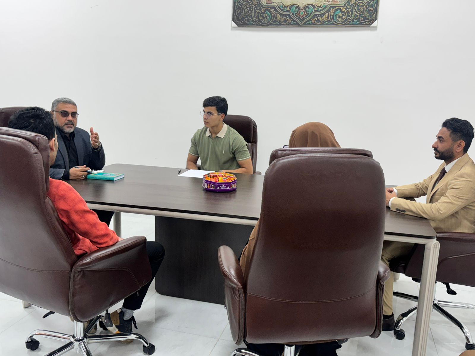 Within the framework of field follow-ups on student affairs, the Dean, Assistant Professor Dr. Laith Mohammed Abbas Al-Husseini, held an extensive meeting with first-year student representatives. The meeting, attended by the Head of the Student Affairs Division, Asst. Lect. Ali Aziz Kadhim, aimed to monitor the educational process and guide the academic path of new students.