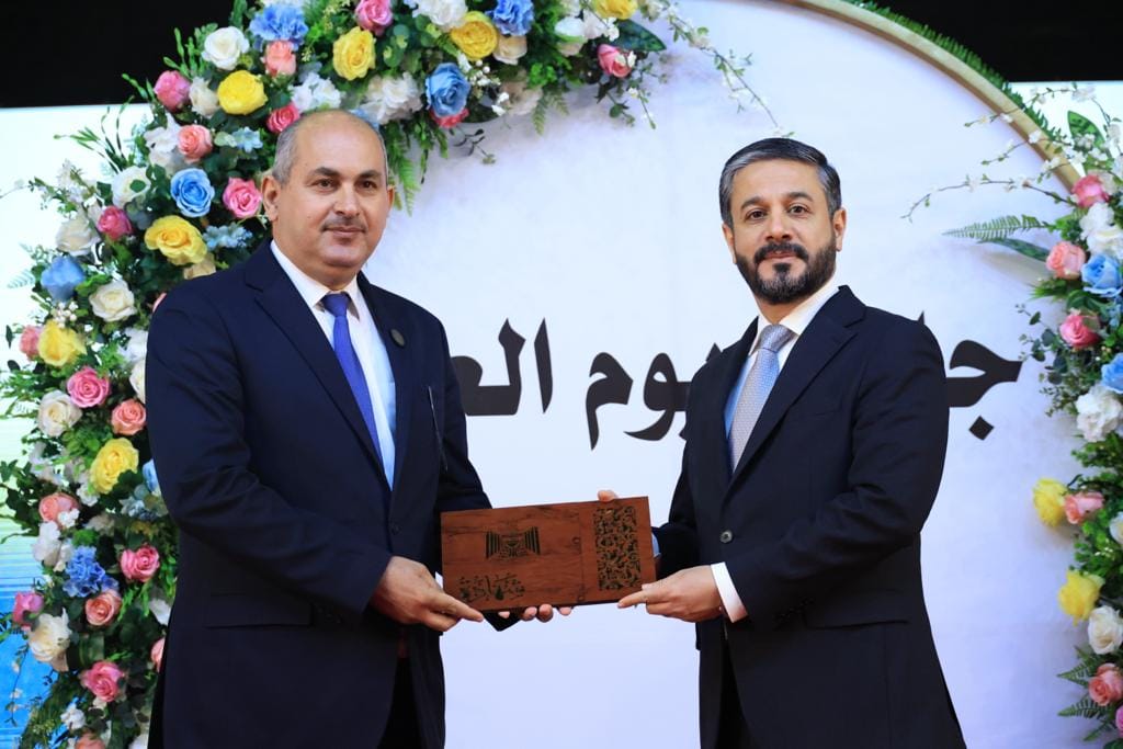 His Excellency the Minister of Higher Education and Scientific Research, Dr. Naim Al-Aboudi, honoured the teaching staff at Warith Al-Anbiyaa University, Professor Dr. Moneim Al-Shouk, teaching at the College of Medicine and assistant professor Dr. Anmar Faleh Dekan, with the “Science Day Award” for the outstanding scientific research outcome.