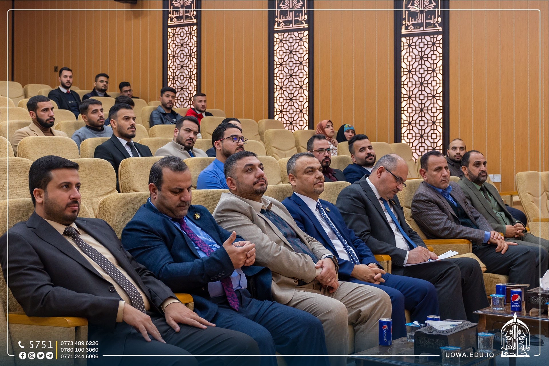 The Department of Civil Engineering, in collaboration with the Department of Scientific Affairs at the University of Warith Al-Anbiyaa (Peace Be Upon Him), organized a scientific seminar titled "Modern Construction Technology Using Hydraulic Jacks Systems Rapid Bridge Replacement on 5 Days Timelapse." The seminar was presented by Dr. Haitham Hassan Mutab Al-Daami, an expert in the design of steel structures and concrete facilities from the University of Babylon.