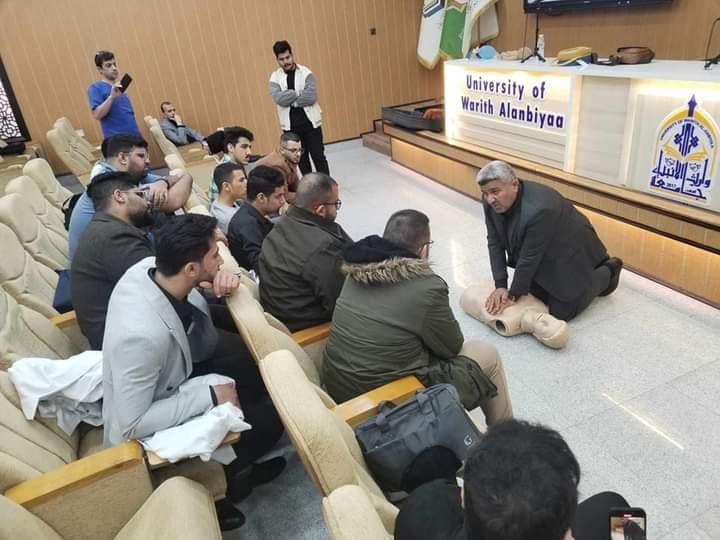 The College of Medicine, in collaboration with the Directorate of Emergency Medical Operations and Services, organized a training workshop for medical students titled "Basic Life Support (BLS) for Seniors and Children." The workshop was delivered by the Director of Emergency Medical Operations and Services, Consultant Doctor Fadel Aklaa Al-Rubaie.