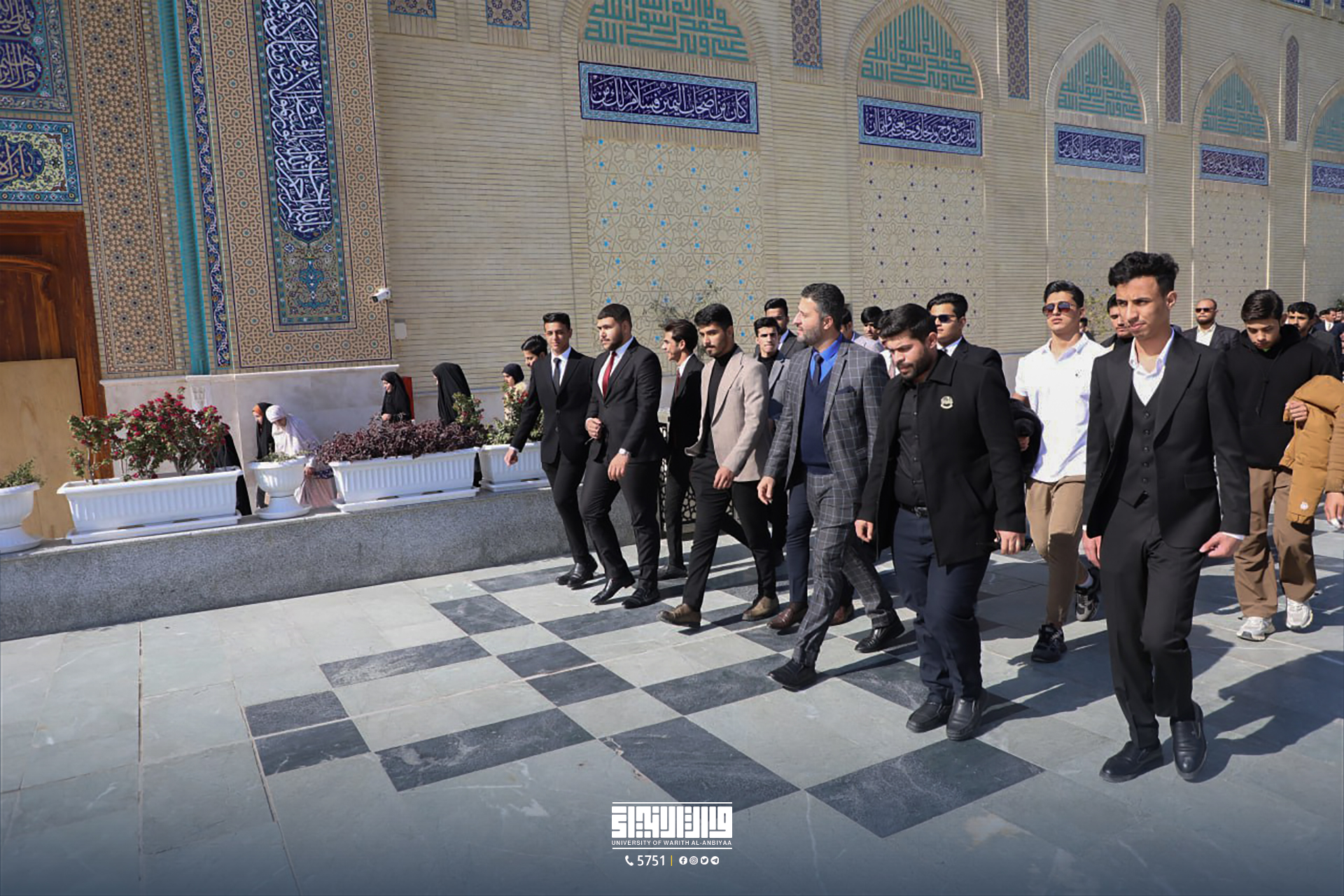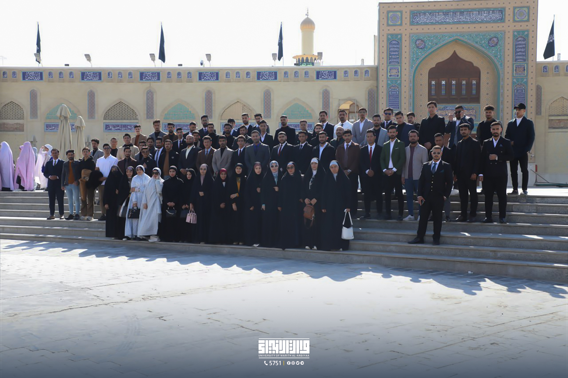 The Law College at Warith Al-Anbiyaa University organized an educational trip for its students and faculty members to the Holy Shrine of Imam Musa Al-Kadhim. During the trip, the students performed visitation rituals and explored the intellectual and cultural activities at the shrine, including visiting the oldest library at the shrine and the wooden manuscripts workshop.