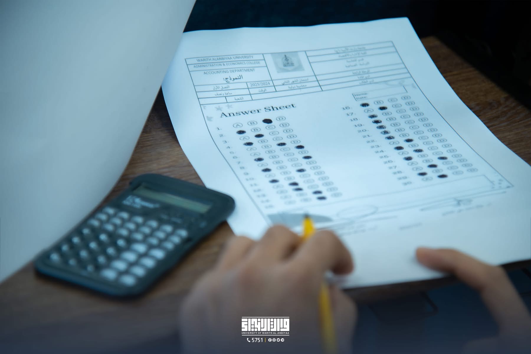 The Faculty of administration and economics at Warith University of the prophets organized the (bubble sheet exam) for its students as part of its academic plan to enhance scientific skills and achieve the requirements of university assessment. The exam was conducted in accordance with the approved academic standards and under the supervision of the teaching staff at the college
