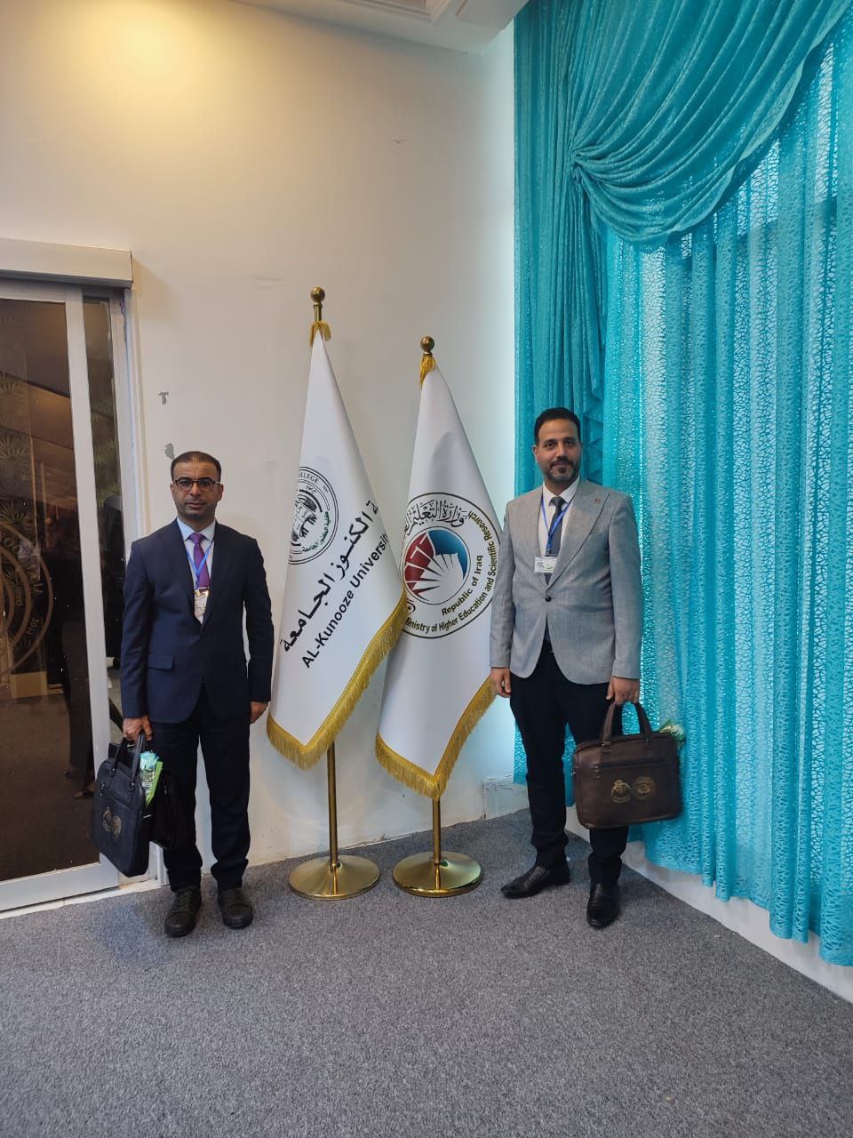 The participation of Assistant Professor Dr. Fahd Maghimish Al-Shammari, Assistant Professor Dr. Mohammed Majid Jwad, and Assistant Hussein Mohammed Ali Kashkoul in the conference held at Al-Kunooz College - Basra.