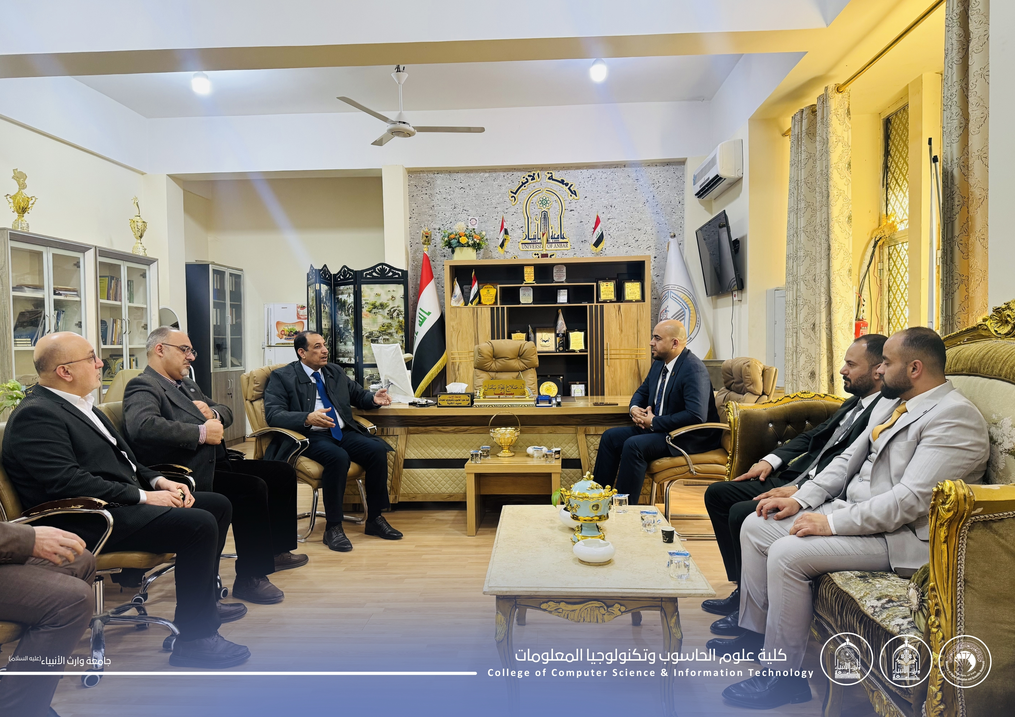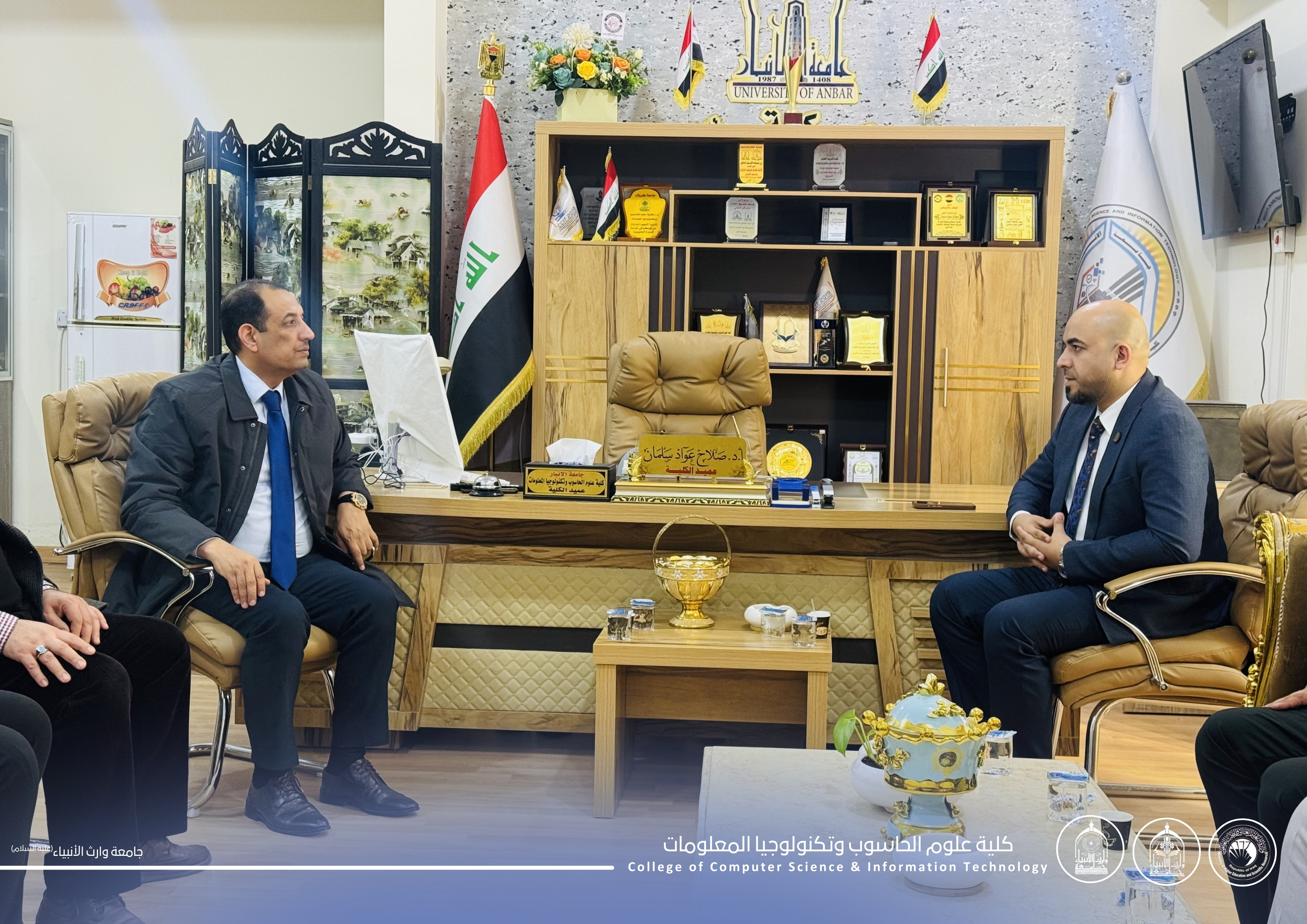Within the framework of strengthening academic cooperation and exchanging scientific expertise, Assistant Professor Dr. Haider Mohammed Ali Al-Ghanimi, Dean of the College of Computer Science and Information Technology at the University of Warith Al-Anbiyaa (peace be upon him), signed a scientific twinning agreement with Professor Dr. Salah Awwad Salman Al-Issawi, Dean of the College of Computer Science and Information Technology at the University of Anbar.