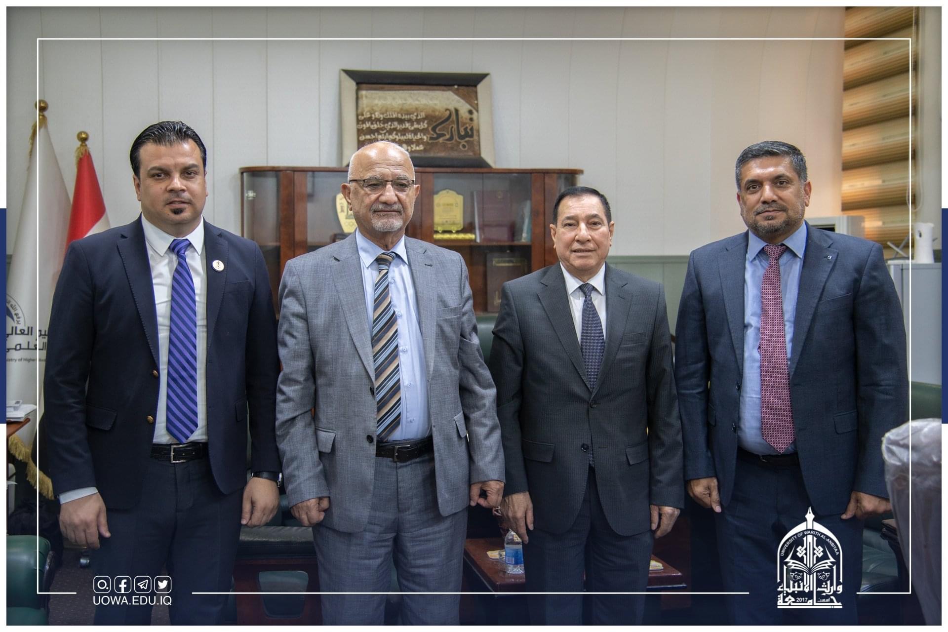 The delegation was headed by Administrative Assistant Prof. Dr. Nofal Al-Araji and the membership of the Dean of the College of Engineering, Prof. Hussein Al-Awadi and Dean of the College of Law, Prof. Ali Al-Sharifi, and they were received by the President of the University of Technology, Prof. Dr. Muhammad Al-Ghabban and Prof. Dr. Hussein Hamid Karim, Assistant President of the Technological University for Administrative Affairs.
