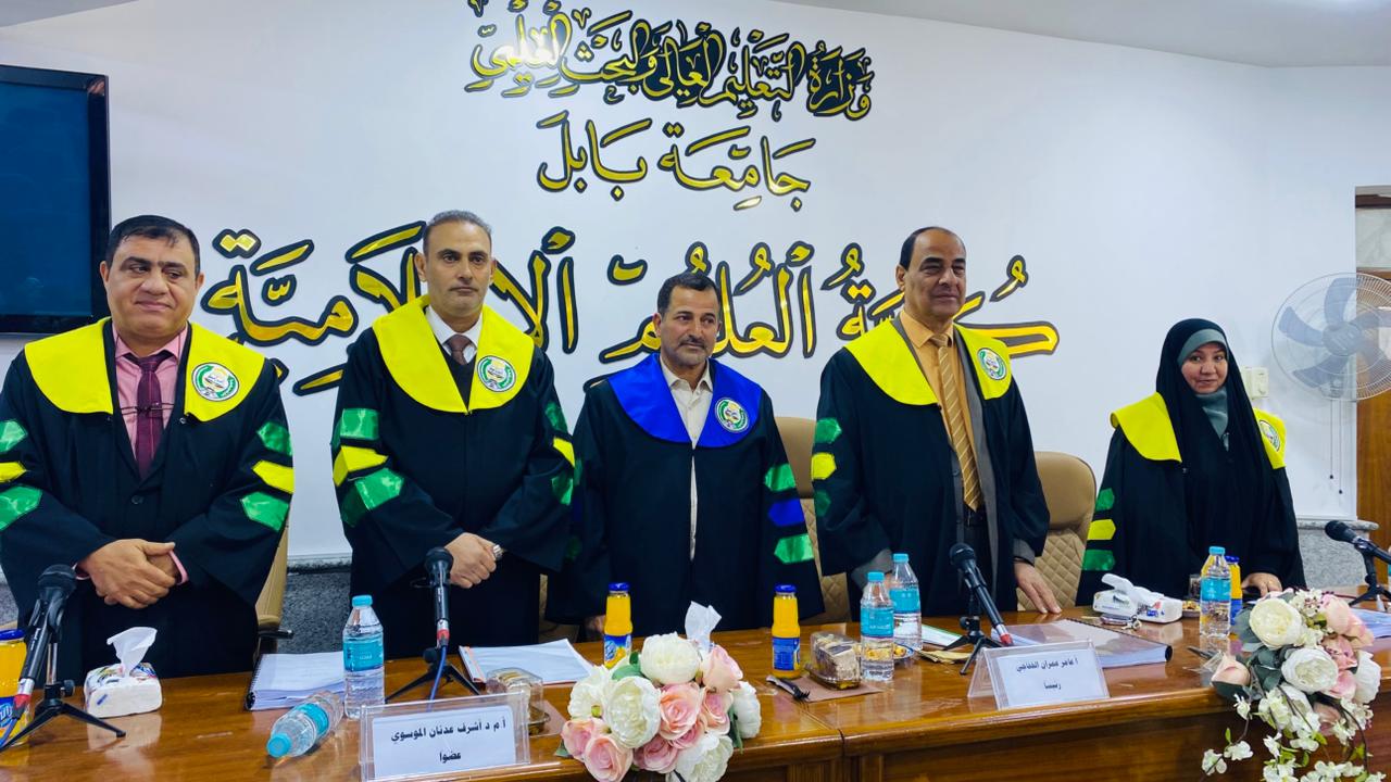 Assistant Professor Dr. Noor Mahdi Kazim, a lecturer at the College of Islamic Sciences at the University of Warith al-Anbiya (peace be upon him), participated in the committee to discuss the master's thesis submitted by the student Qais Ali Samir entitled "Al-Fath in the Holy Qur’an, an objective study", which was held on Sunday 12/8/2024 at the College of Islamic Sciences at the University of Babylon.