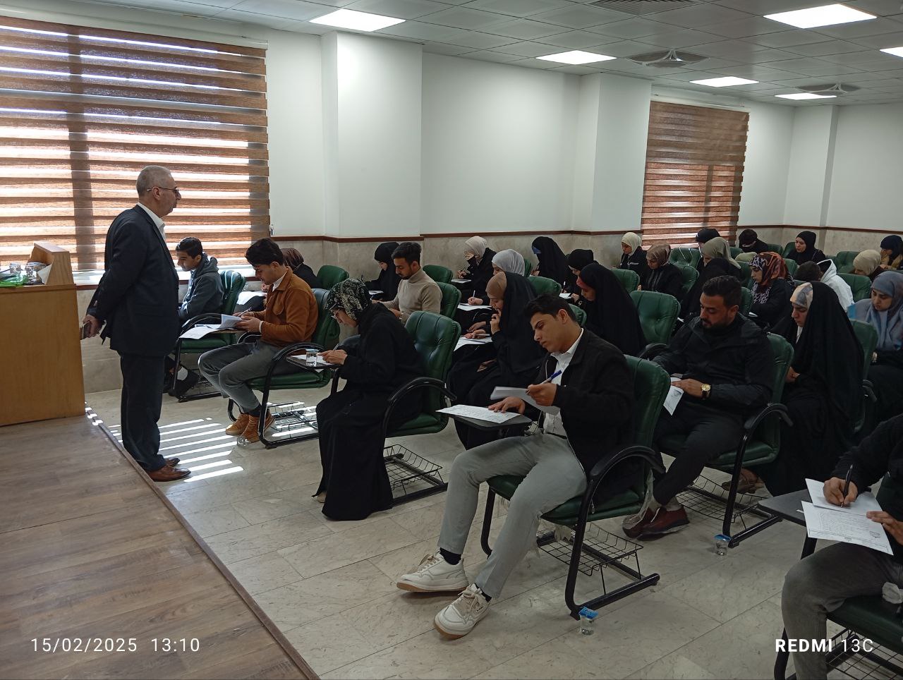 The first semester exams for the academic year 2024-2025 at the College of Islamic Sciences witnessed a smooth and regular start, as first-year students took their exams in a calm atmosphere and precise organization, starting from Saturday, February 15, 2025.
