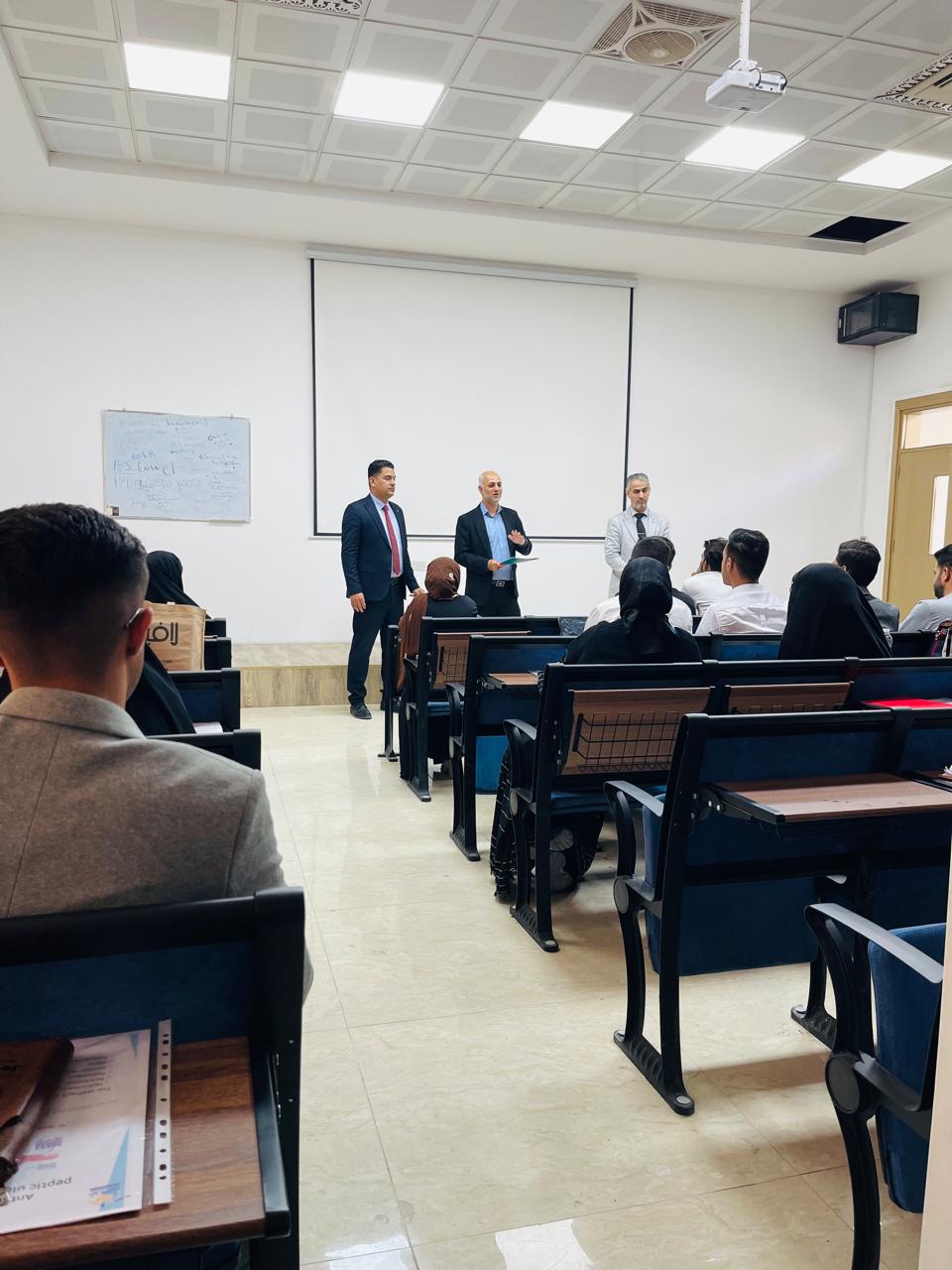During the visit, the members of the "Words of Light" project team, Dr. Muntadher Shukr and Dr. Abbas Adnan, provided a detailed explanation of the importance of the project in supporting the connection to the Qur'anic texts and achieving integration between academic and cultural aspects. The students also had the opportunity to learn about the stages of the project and its goals in building a spiritual and scientific relationship with the Holy Qur'an through the writing experience.