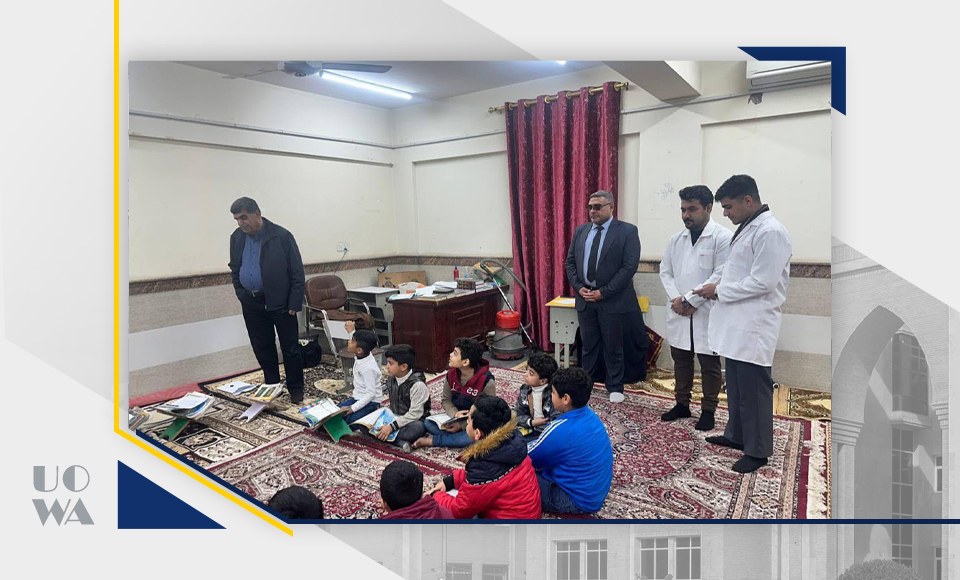Under the slogan (A Message of Hope and Knowledge) and within the framework of social responsibility, the College of Medicine, under the direction of the respected Dean of the College, Professor Dr. Ali Abdul Saadoun, organized a team of students on an awareness visit to orphan schools (Sayyida Ruqayya Elementary and Secondary School for Girls and Ali Al-Asghar Elementary and Secondary School), with the aim of providing psychological and cognitive support to students, and enhancing their awareness in various life, educational and health fields. The visit was a wonderful opportunity to spread hope and positivity among primary and secondary school students, through educational lectures and interactive workshops, aimed at developing their skills, enhancing their self-confidence, increasing their health awareness and encouraging them to be up to their future responsibilities. The student team was accompanied by the respected assistant, Professor Dr. Laith Abbas, Professor Dr. Taleb Jawad, Lecturer Dr. Maher Abboud and Engineer Mr. Muhammad Baqer. The team was keen to provide sessions on the importance of education, caring for mental and physical health, developing personal skills, and supporting their academic career. During the visit, we saw the spirit of challenge and determination in the eyes of the students, which confirmed the importance of such initiatives in enhancing their self-confidence and making them feel that society cares about them.