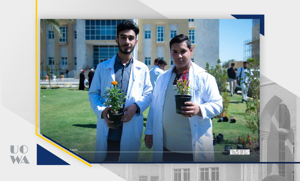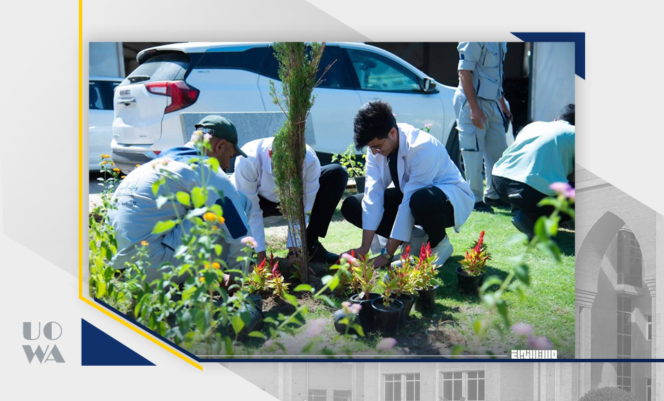 In a scene that reflects a spirit of cooperation and belonging, a number of students and faculty members from the College of Medicine at Warith al-Anbiya University (peace be upon him) participated in a campaign organized by the Decoration and Landscaping Division of the Diwan Affairs Department to plant several green spaces on campus.