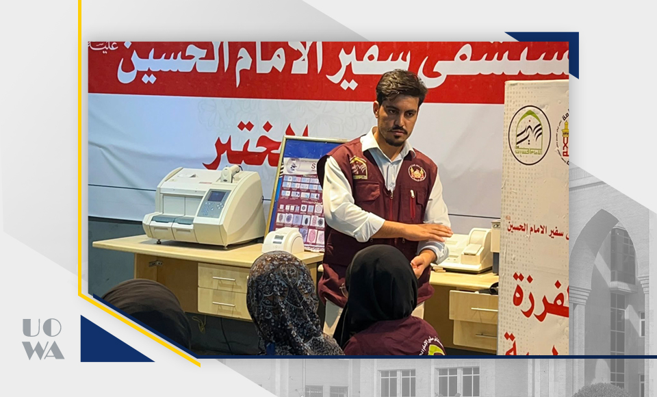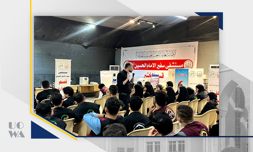 As part of the medical preparations for the Arbaeen pilgrimage, a number of medical students at Warith Al-Anbiya University (peace be upon him) participated in a training workshop held in the emergency room of Safir Al-Imam Al-Hussein Hospital (peace be upon him). The workshop, presented by Dr. Alaa Al-Janabi, focused on dealing with emergency cases and first aid, with the goal of enhancing students' readiness to participate in the medical services provided to pilgrims.