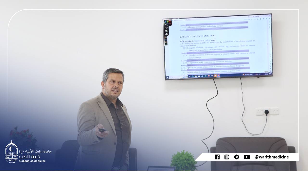 As part of its efforts to obtain accreditation, the College of Medicine, and in the presence of the Dean, Professor Dr. Ali Abd Saadoun Al-Ghazi, holds a number of meetings with the Leading Committee for Accreditation to review the latest work with the subcommittees for accreditation.