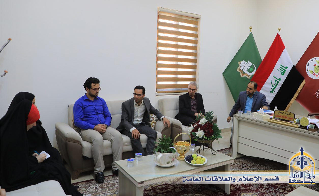 A delegation from Alhamdaniya University, which is located in Nineveh city, visited the University of Warith Alanbiyaa. The delegation was consisted from the scientific assistance Dr. Kazal Yassin, the head of scientific affairs department Dr. Jasim Mohammed Rajab and from El-Shaykh Khair Al-Deen Al-Hadi. The delegation came to discuss the possible agreements and cooperation between the two universities, and was received by the acting President of the University Dr. Abbas al-Daami and some deans of colleges and heads of departments.