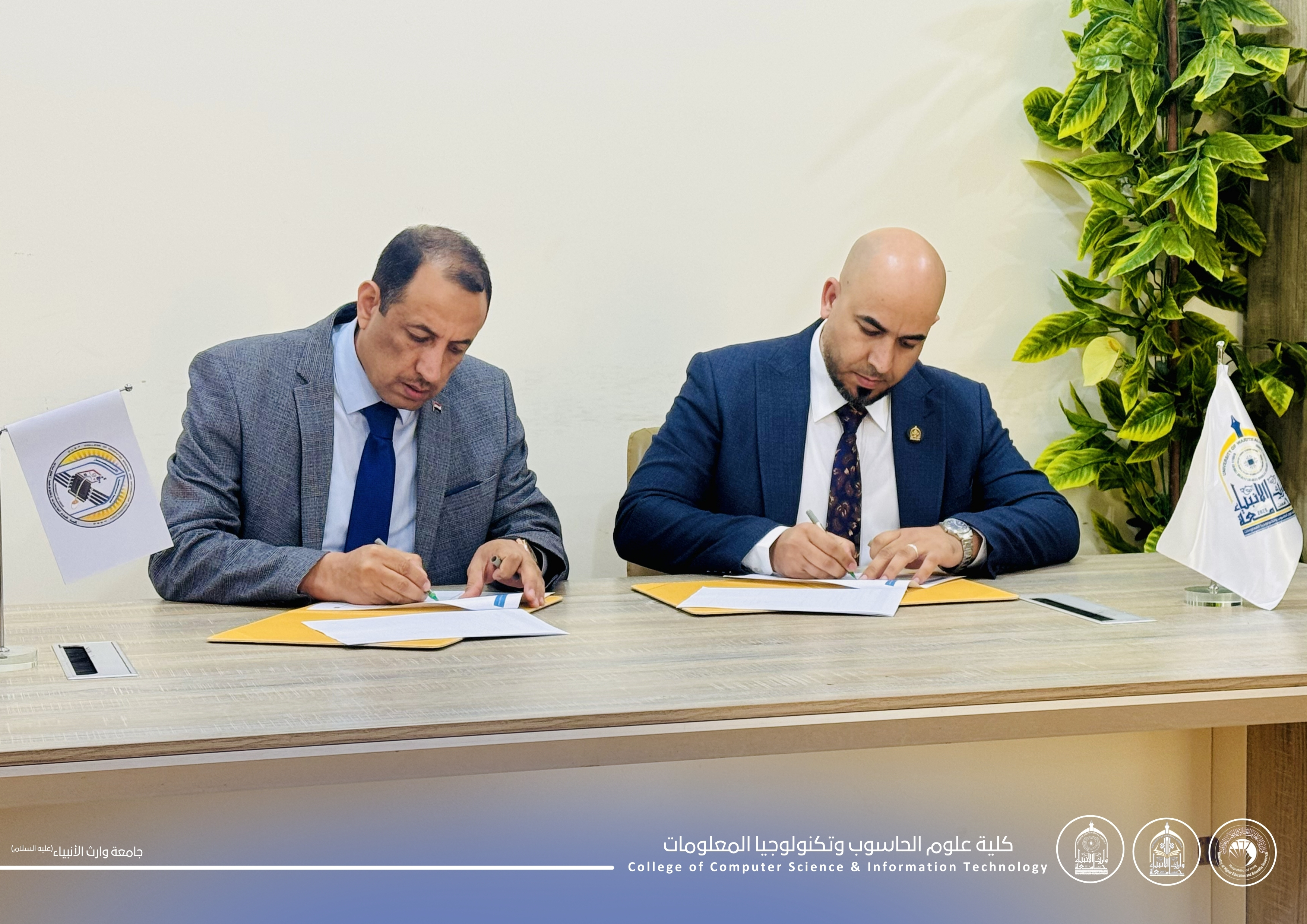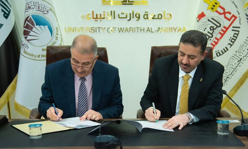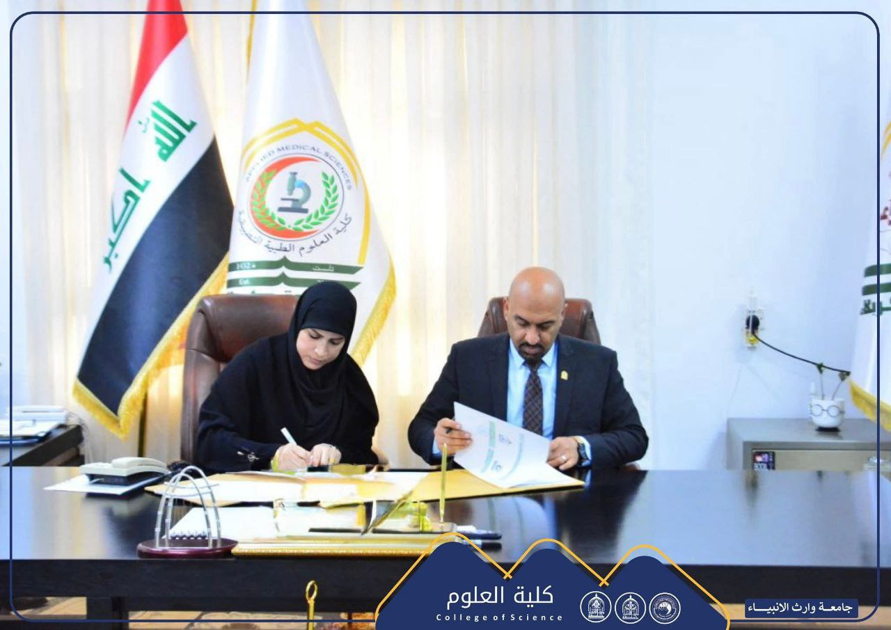 Within the framework of strengthening academic collaboration and the exchange of scientific expertise, Assistant Professor Dr. Shaimaa Hussein Nawfal, Dean of the College of Science at the University of Warith Al-Anbiyaa (peace be upon him), signed a scientific twinning agreement with Assistant Professor Dr. Hassan Faisal Neama Al-Yasiri, Dean of the College of Applied Medical Sciences at the University of Karbala.